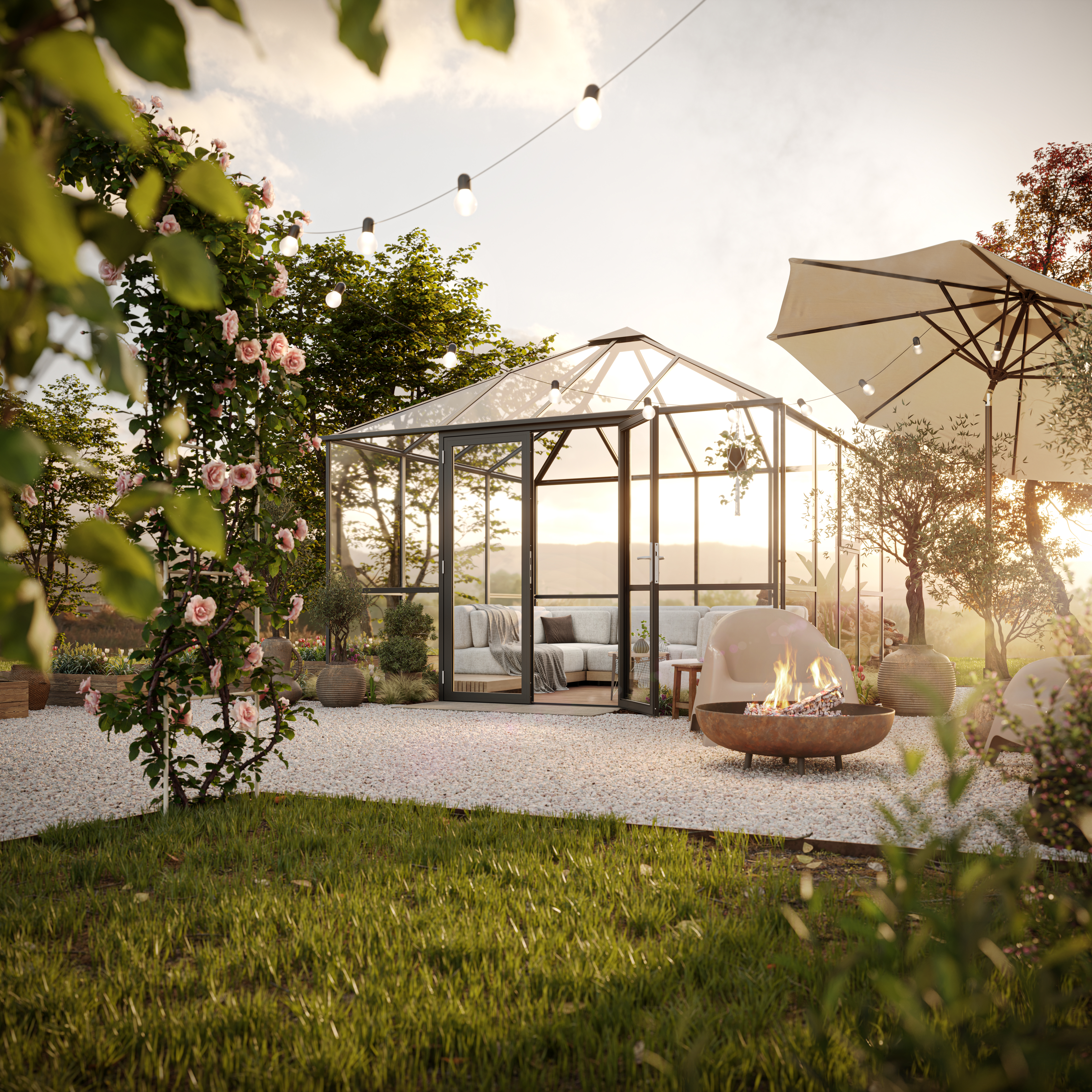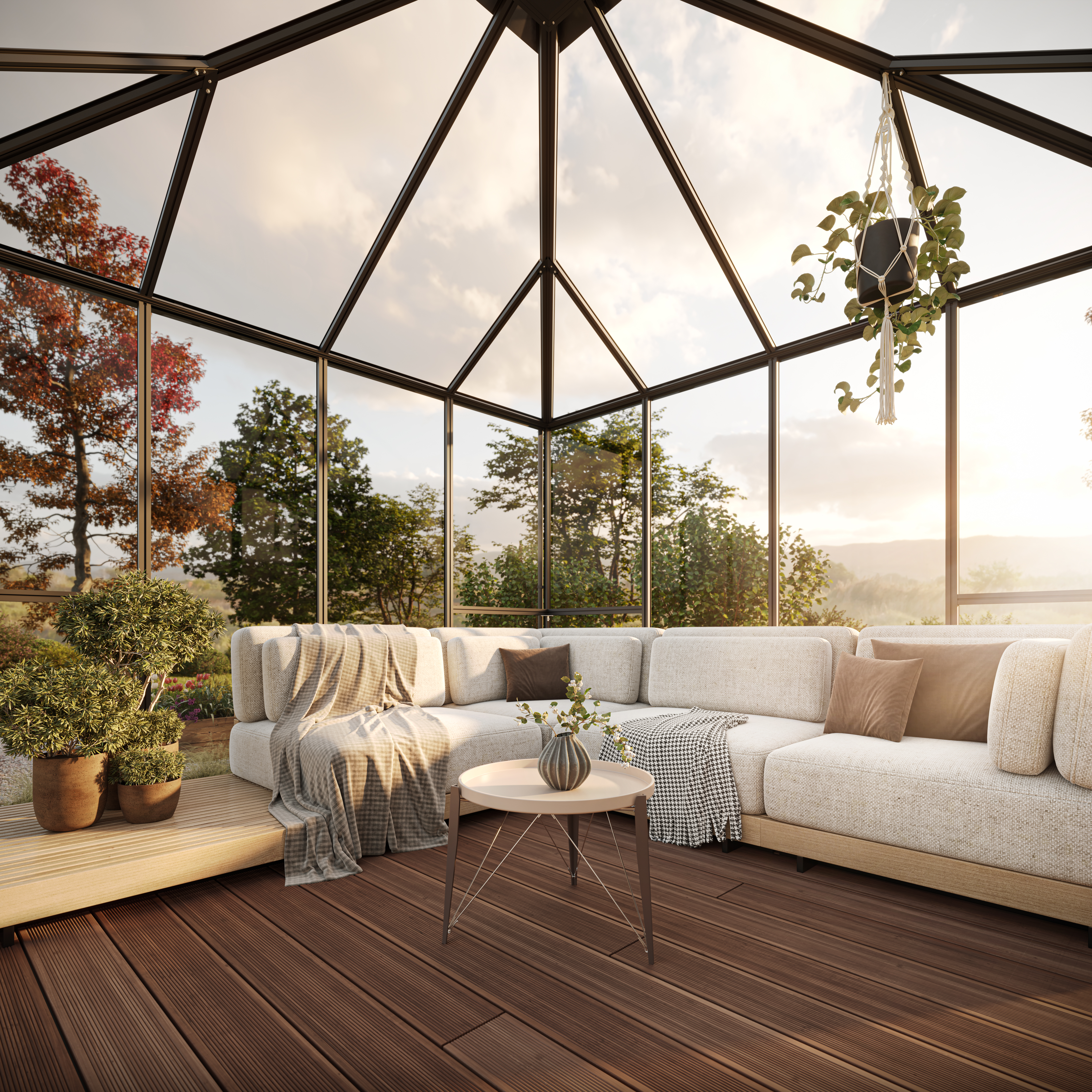 - 4 mm ESG-Verglasung an Giebel und Traufe