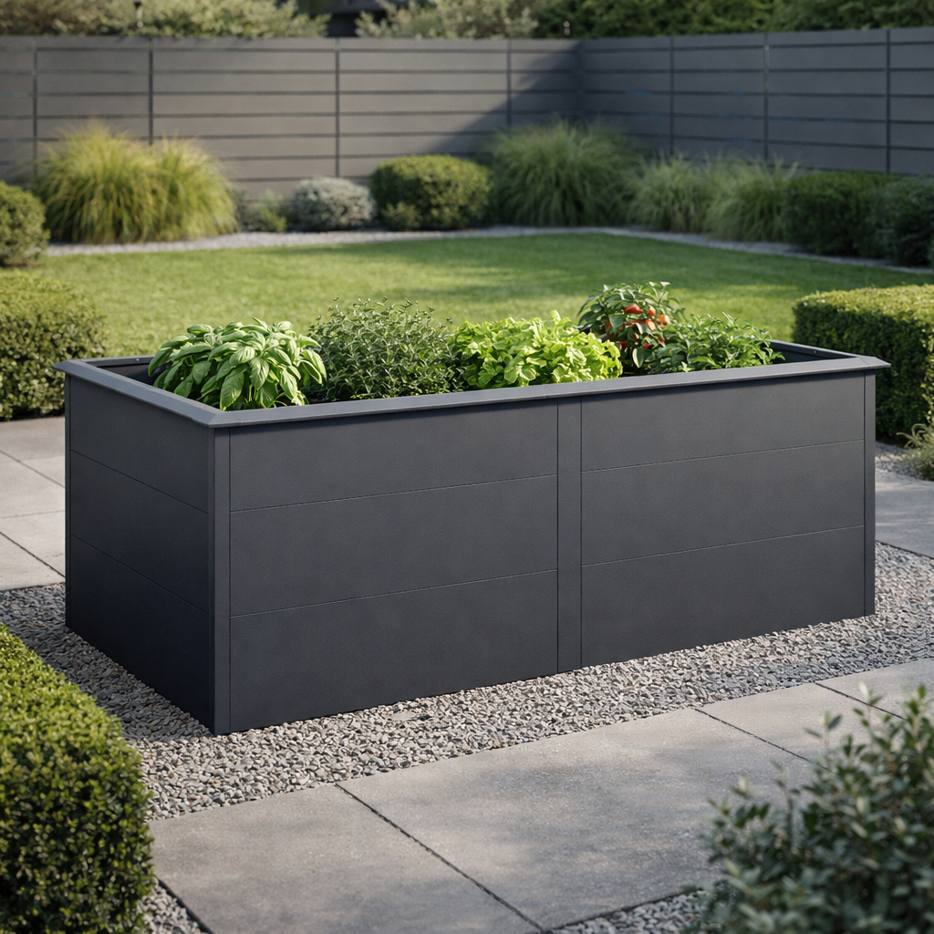 Abmessungen (B x L x H): 1,49 m x 0,74 m x 0,78 m Hochwertiges Hochbeet UrbanGrow L aus verzinktem, pulverbeschichtetem Stahl Extrem langlebig, witterungsbeständig und formstabil Ergonomische Höhe für rückenschonendes Gärtnern Modernes Design für Garten, Terrasse oder Hof Ideal für Gemüse, Kräuter und ZierpflanzenDas Hochbeet wird als Bausatz geliefert